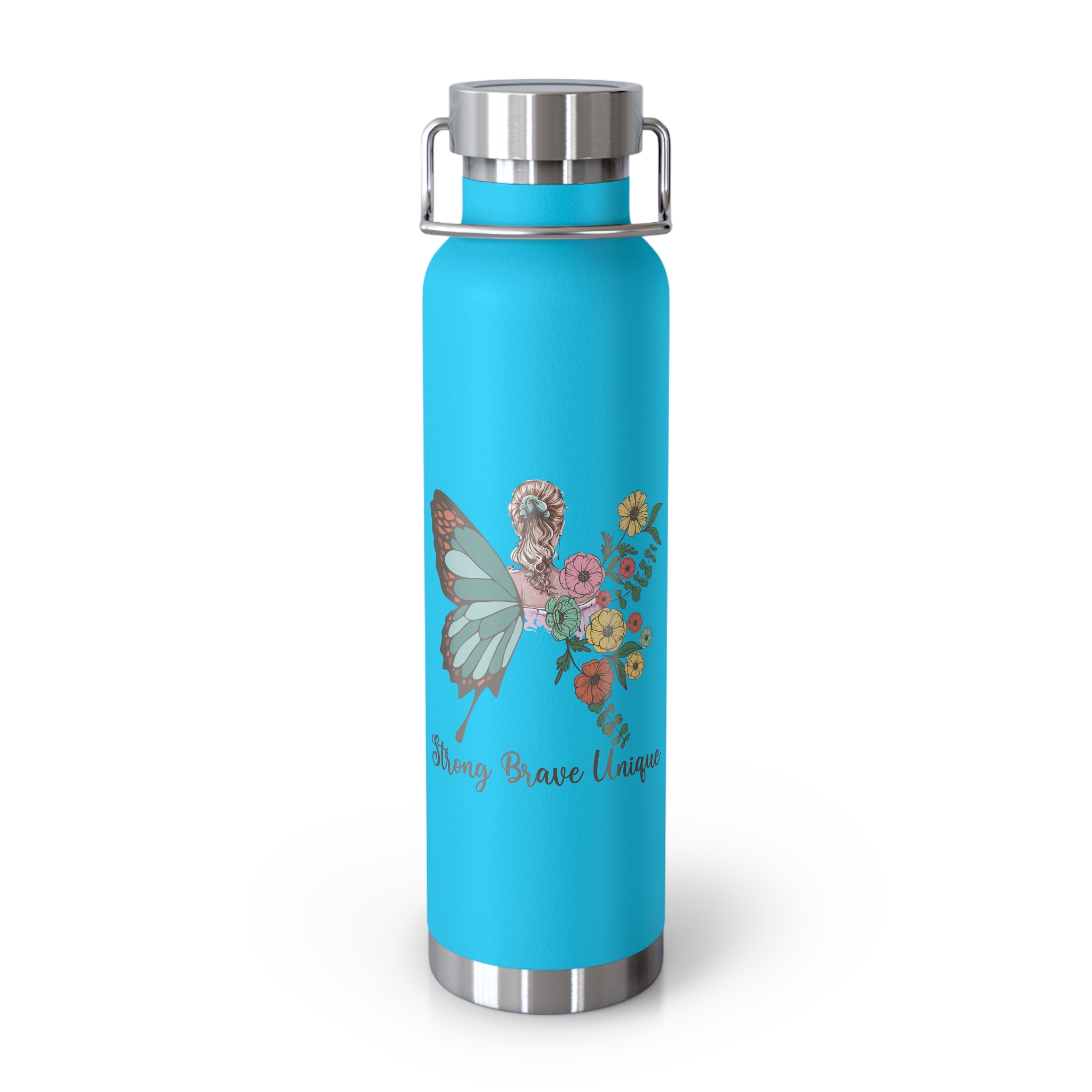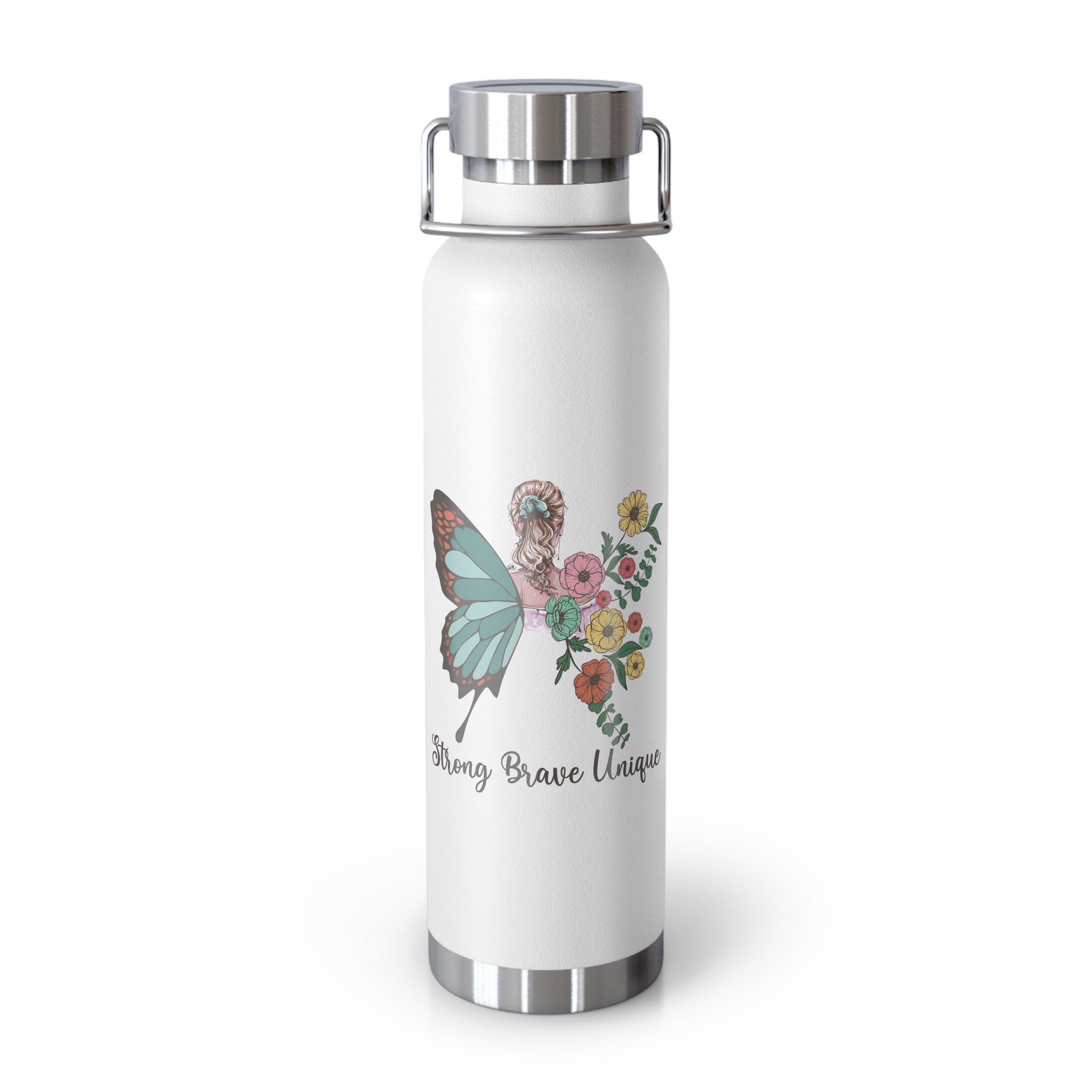 A slim, 22oz insulated bottle that keeps drinks truly hot or icy cold while you move through your day. The double-wall stainless steel with copper insulation locks temperature in and keeps the outside dry—no sweating on backpacks or desk surfaces. The white powder-coat finish is tough against scratches and fading, and the wide mouth accepts ice and makes filling simple. The screw-on lid with a sturdy hand loop stays put during commutes and hikes, and the lightweight, spill-resistant design slips into bags with confidence. The floral “Stay Positive” artwork adds a calm, optimistic touch that fits into morning routines, trail breaks, or long study sessions.